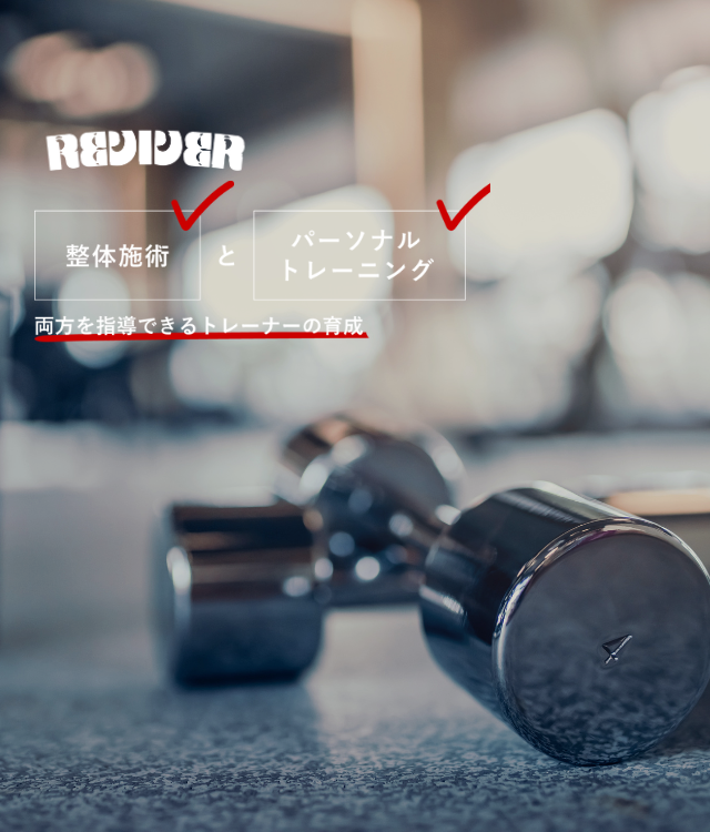 整体とパーソナルトレーニングを組み合わせすることで、施術だけでなくは良くならない症状も根本から改善し、さらに身体能力が向上します。 REVIVERの研修がみなさんを成功に導いてくれるでしょう!